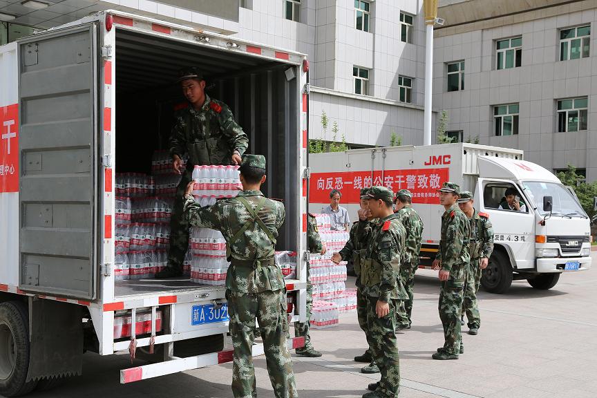 “你們辛苦了!謝謝你們。有你們的保衛,我們才能夠安穩的生活、安心的工作,你們為新疆的穩定和發展不惜流血流汗,無私奉獻。我們送來這些礦泉水,表達感謝之情。”這些動情的言語,表達著前來慰問人員的敬仰之心。