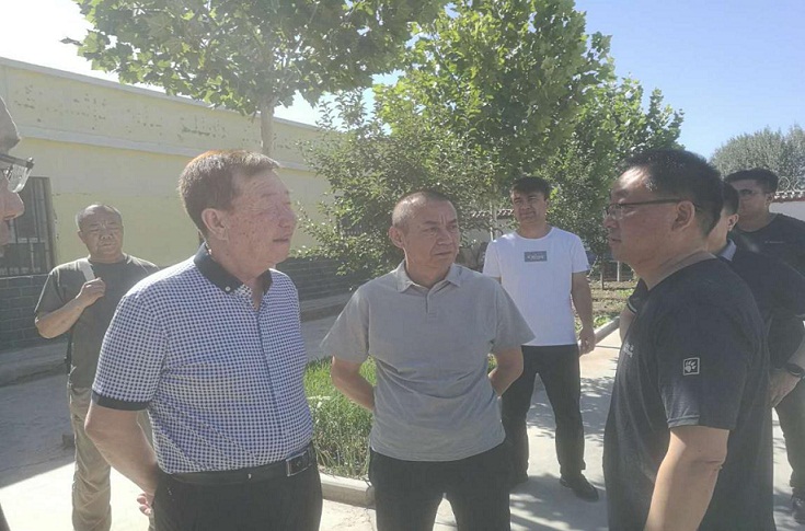 自治區(qū)稅務(wù)局黨委委員、副局長買如普·買合木提、務(wù)師行業(yè)黨委副書記、會(huì)長、同 心服務(wù)團(tuán)團(tuán)長李桓與駐村工作隊(duì)第一書記陳嘉偉親切交談